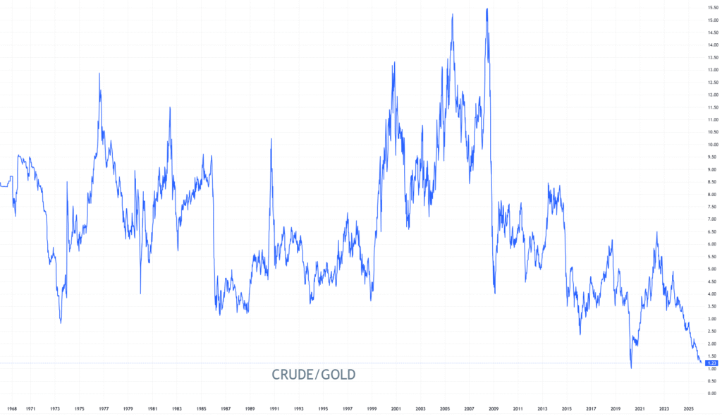 - The Crude-to-Gold Ratio: It always used to mean revert from ~3.5 for half a century. But after 2014 shale fracking discovery and energy transitions, it never returned to its previous levels.